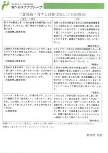 【牧病院】ご意見箱に対する回答と感謝のお言葉(2025.10月分)
