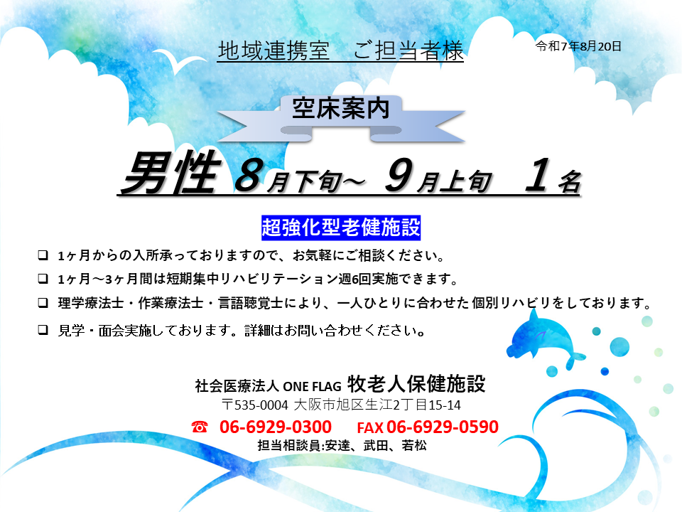 【医療・介護関係者向け】空床状況のご案内(2025年8月20日 現在)