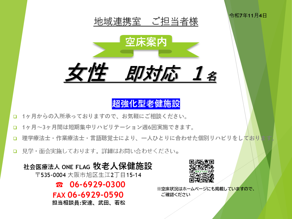 【医療・介護関係者向け】空床状況のご案内(2025年11月4日 現在)