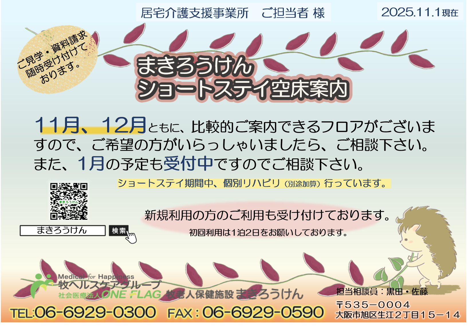 ショートステイ空床状況(2025年11月1日現在)