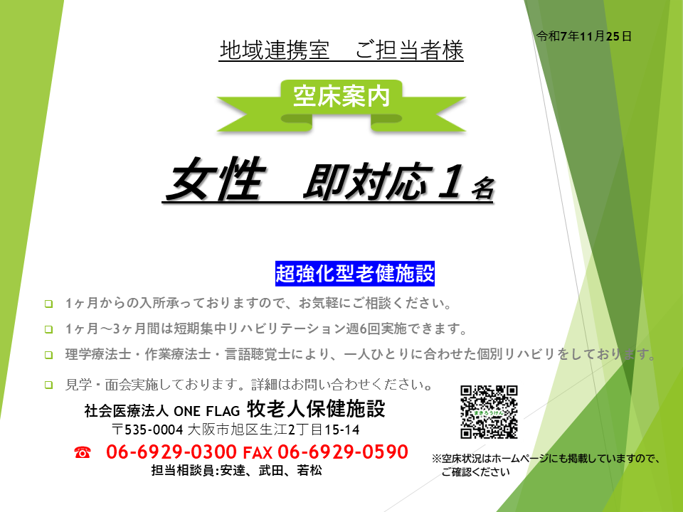 【医療・介護関係者向け】空床状況のご案内(2025年11月25日 現在)