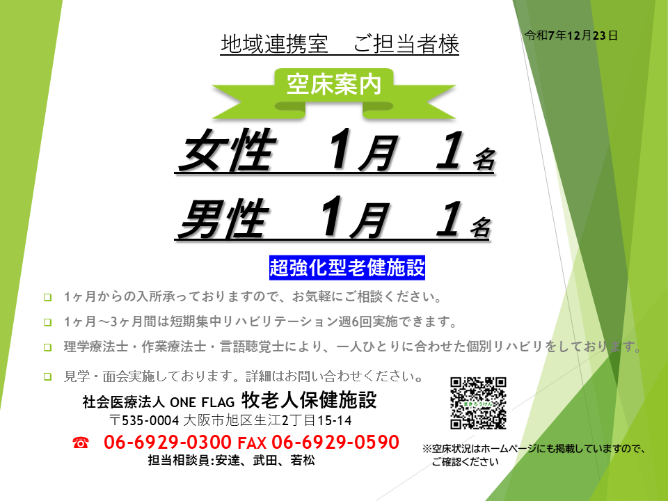 【医療・介護関係者向け】空床状況のご案内(2025年12月23日 現在)