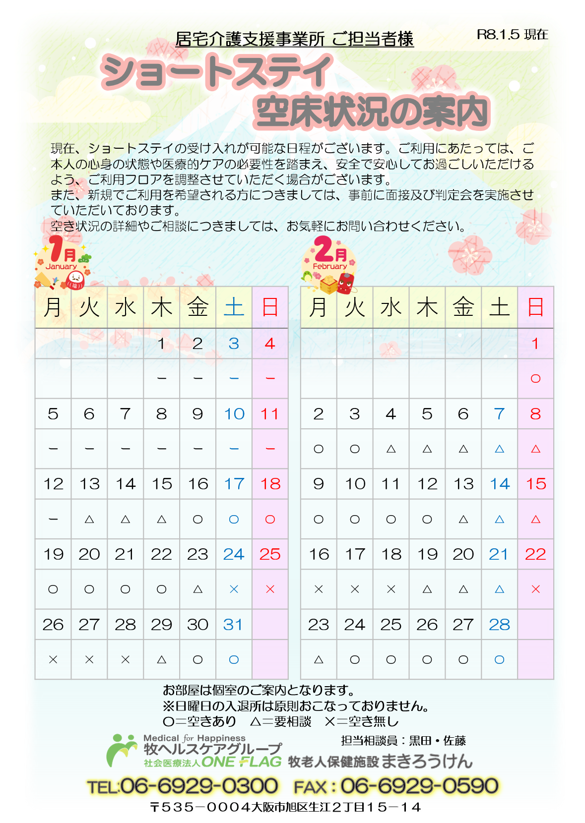 ショートステイ空床状況(2026年1月現在)