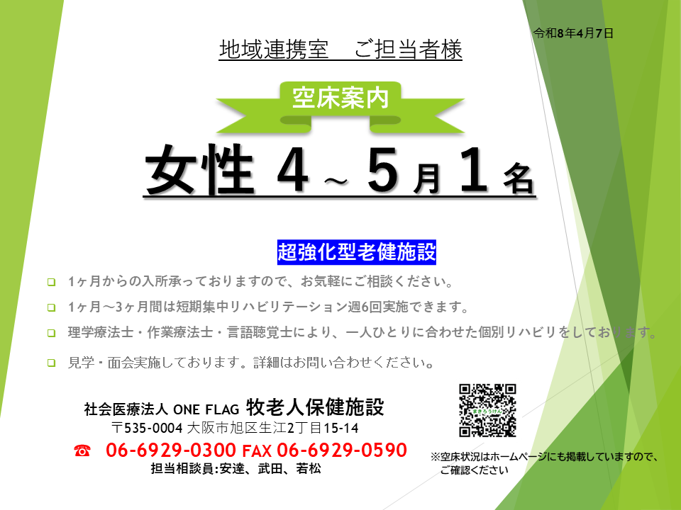 【医療・介護関係者向け】空床状況のご案内(2026年4月7日 現在)