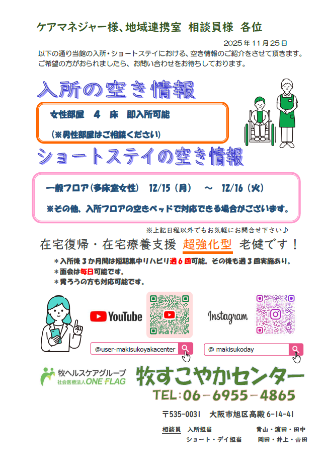【空床情報のお知らせ 2025年11月25日現在】
