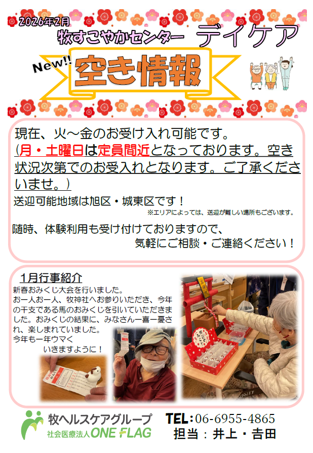 【デイケア空き情報 2026年2月1日現在】