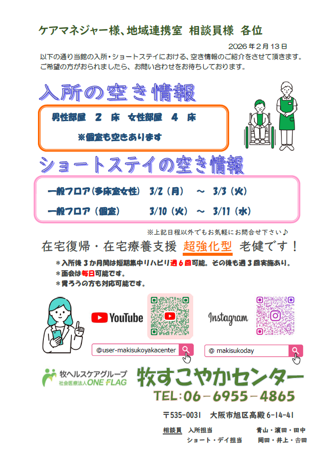 【空床情報のお知らせ 2026年2月13日現在】