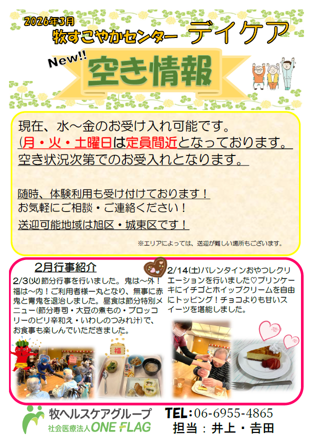 【デイケア空き情報 2026年3月2日現在】